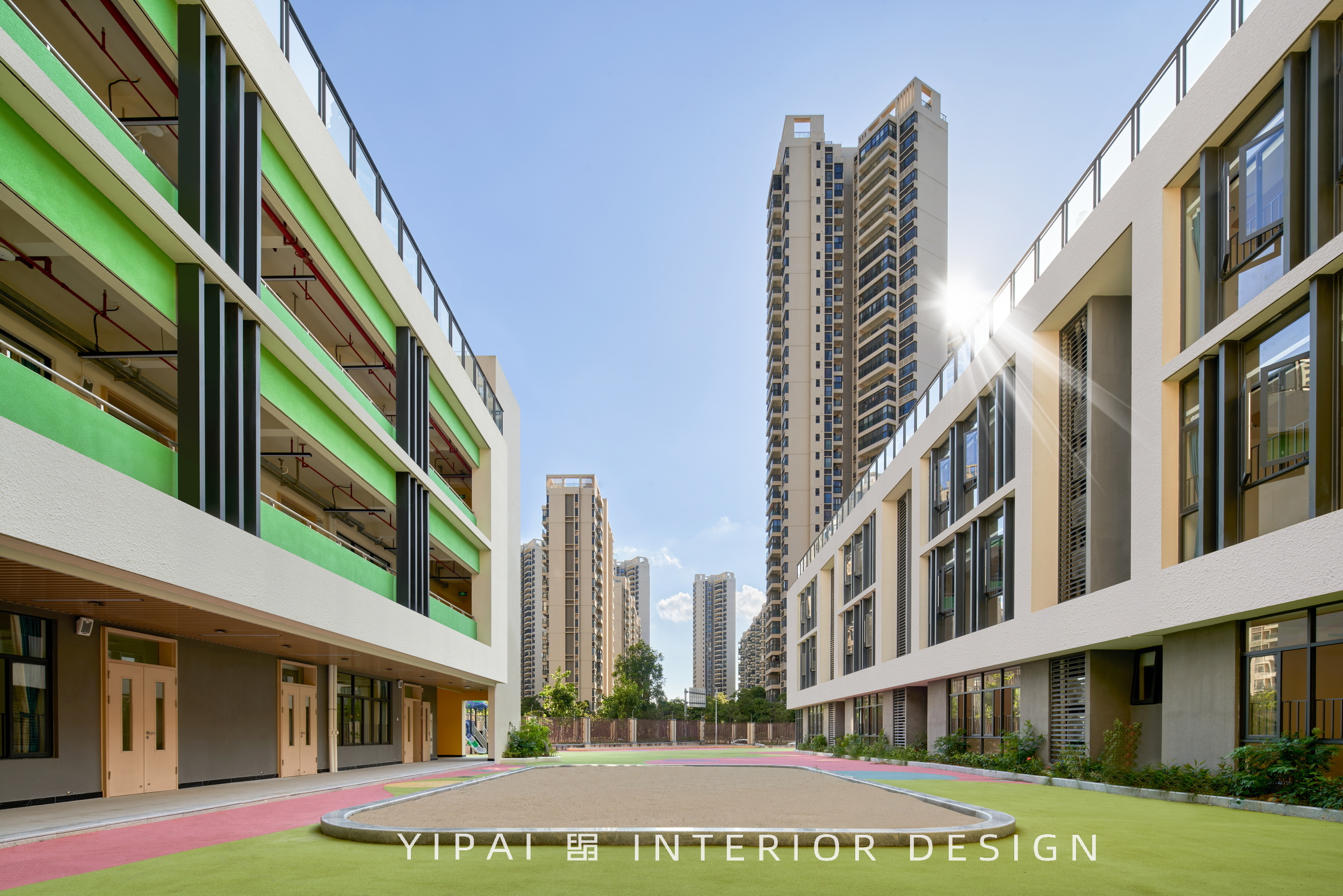 項(xiàng)目位于珠海斗門區(qū),廣東省珠海市斗門區(qū)新青五路南碧水岸西南側(cè),是自帶“貴族”氣息的幼兒園,園區(qū)室內(nèi)外的總面積超10000平方米;設(shè)計(jì)需滿足日照標(biāo)準(zhǔn)的幼兒園功能及室外活動(dòng)場地,因此將幼兒活動(dòng)單元及活動(dòng)場地布置在建筑周圍,讓小朋友可以在天氣晴朗的時(shí)候,在陽光下恣意奔跑玩耍。