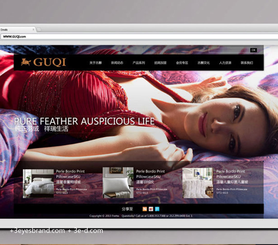 中國20幾年城市化及房地產(chǎn)的迅猛發(fā)展,成就了一批如:羅萊、夢(mèng)潔、富安娜等家紡品牌。我們看準(zhǔn)歐美日對(duì)天然高質(zhì)產(chǎn)品的旺盛需求,及國內(nèi)新一輪消費(fèi)升級(jí)的契機(jī)。將古麒重新定位于“立足上海的高端羽絨”家紡品牌。視覺錘創(chuàng)作出一匹高貴而祥瑞的麒麟神獸,并全面視覺系統(tǒng)化,慧目堂全方位的將古麒羽絨從一個(gè)地方性的小品牌包裝成具有國際化品質(zhì)的一個(gè)高端羽絨品牌。