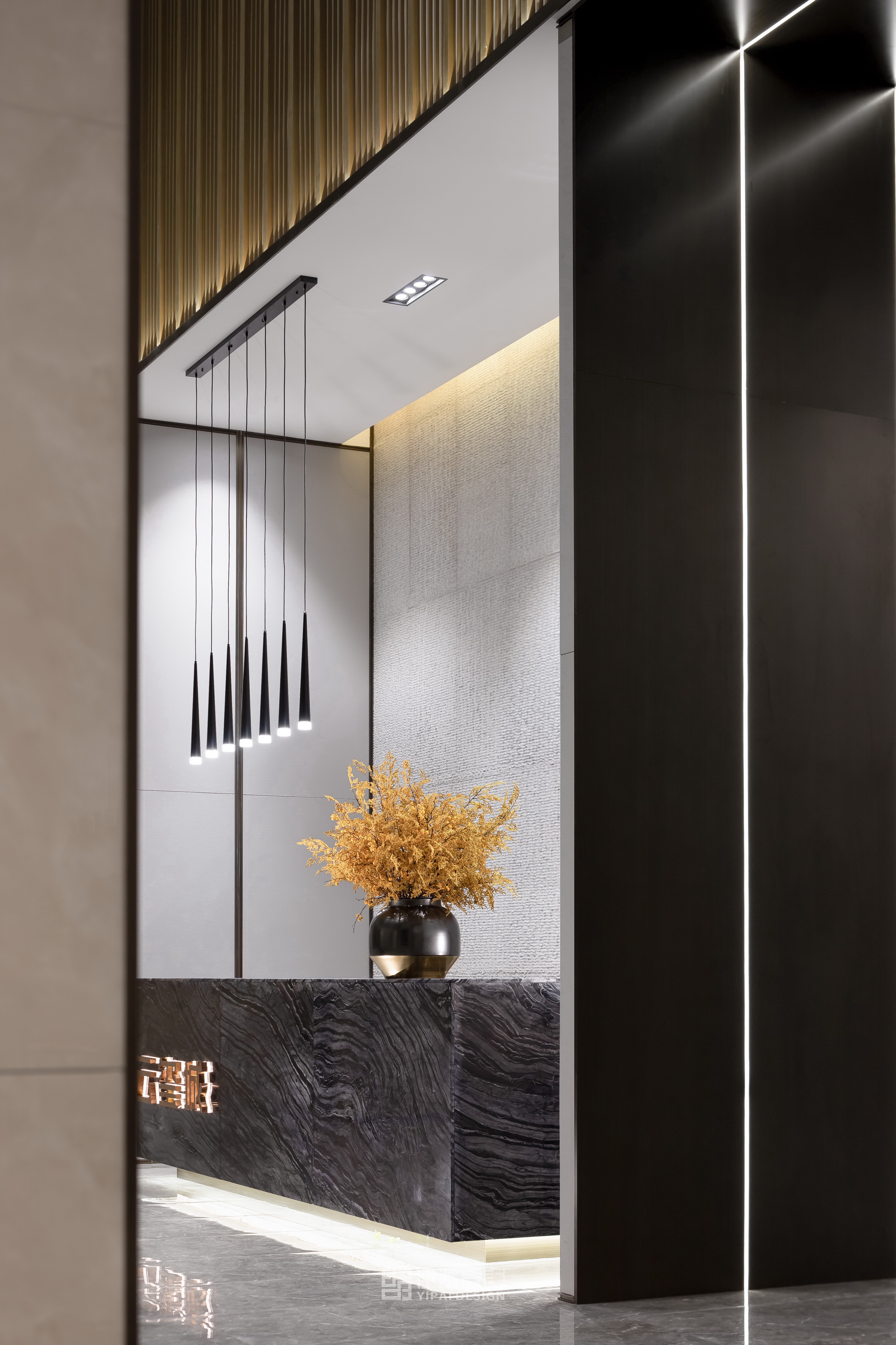 整個(gè)項(xiàng)目的設(shè)計(jì)圍繞著一個(gè)歸家的主題,讓回家的路上充滿儀式感。空間中軟裝的打造呈現(xiàn)自然的回歸以及詩意的棲居,是陳設(shè)注入空間時(shí)所要傳遞和表達(dá)的主要精神訴求;6000k特殊要求的燈光照明,如白駒過隙般尋回中國式的清幽雅致狀態(tài),讓節(jié)奏慢下來,過一種真正健康的閑適和覺醒的生活。
