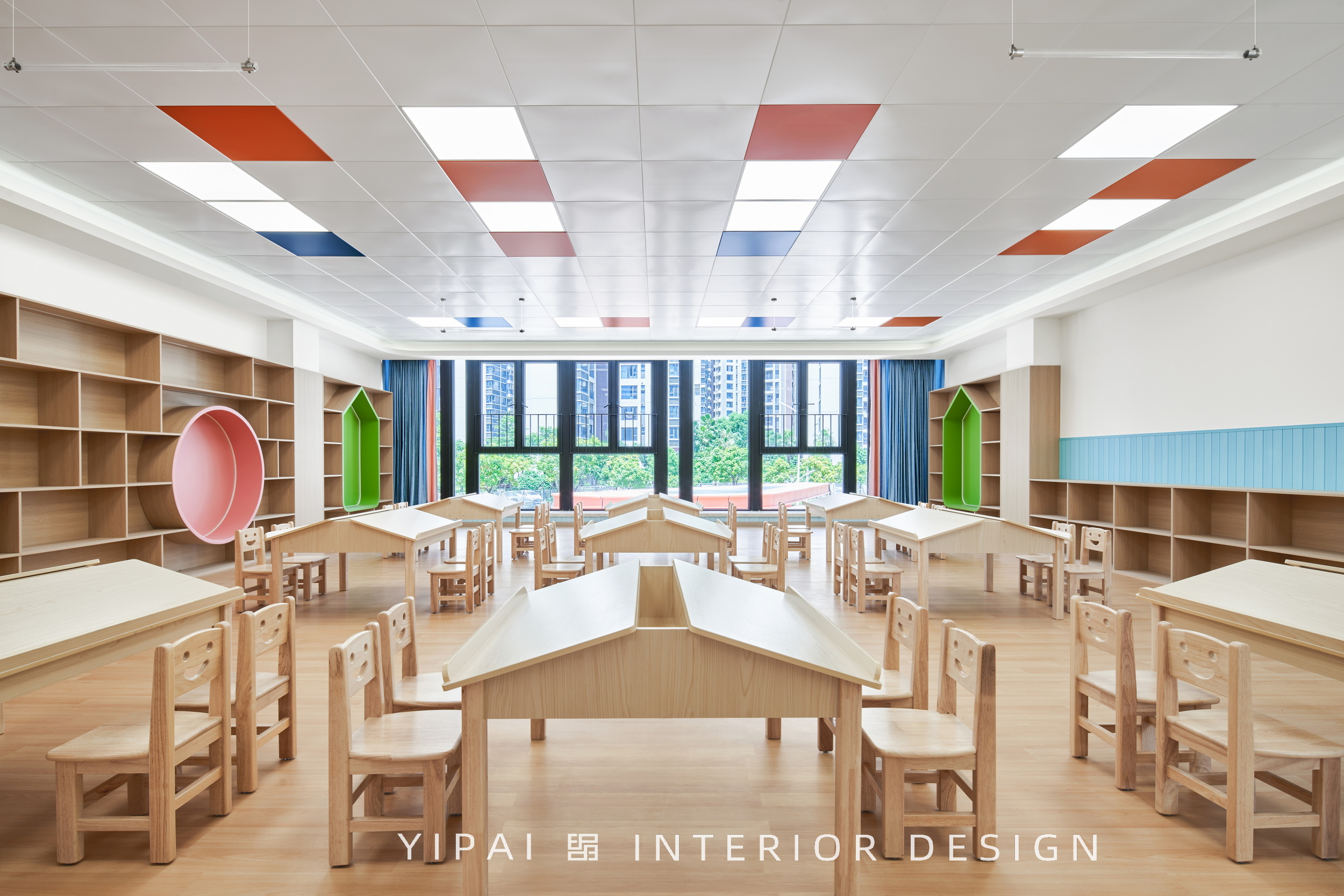同時(shí),這種布局也在街角形成開闊的城市關(guān)系,讓幼兒園成為城市背景中的一抹亮色。